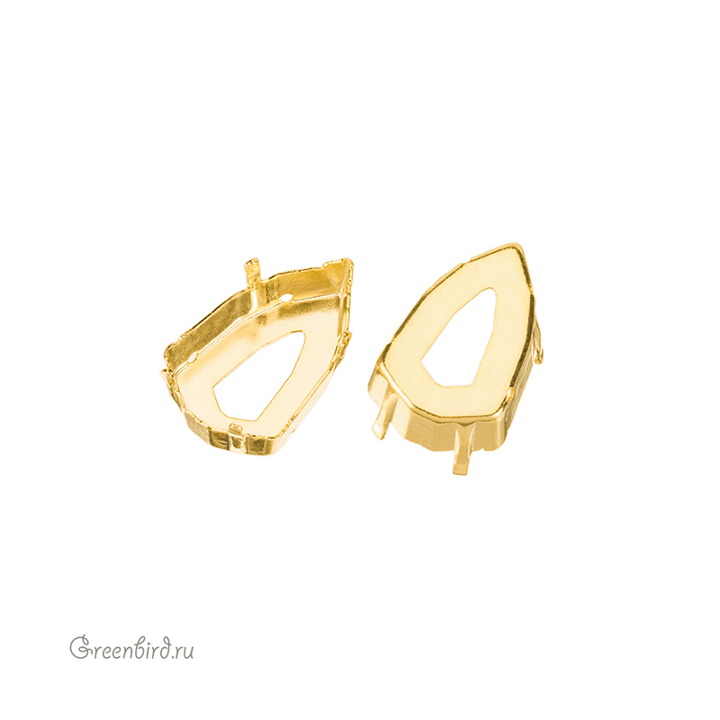 Оправа для ювелирных кристаллов – 4707 Slim Trilliant FS. Размер: 18,7 х 11,8 мм, высота боковой стороны (без лапок): 5,6 мм, отверстия: 1,2-1,35 мм. Материал: томпак (разновидность латуни), покрытие: золото. Производство: Германия. Цена указана за 1 шт.