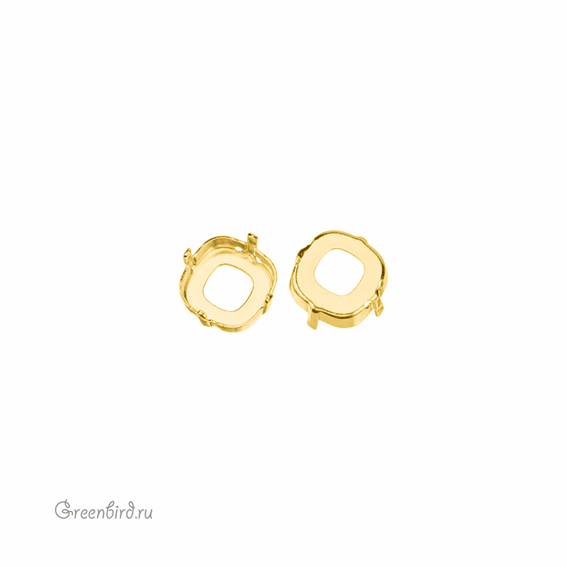 Оправа для ювелирных кристаллов Тонкий Кушон Квадрат - 4483 Thin Cushion FS. Размер: 10 мм, высота боковой стороны (без лапок): 3,3 мм, отверстия: 0,8 x 1,1 мм. Материал: томпак (разновидность латуни), покрытие: золото. Производство: Германия. Цена указана за 1 шт.
