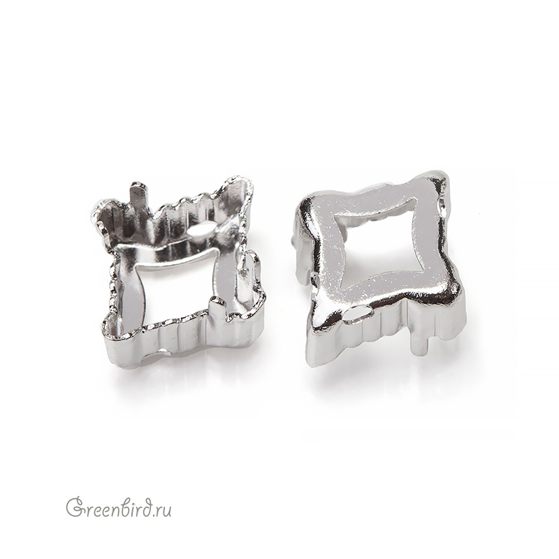 Оправа для кристаллов Swarovski – 4927 Rhombus Tribe. Размер: 14 х 12 мм, металл: латунь, покрытие: родий. Цена указана за 1 шт.