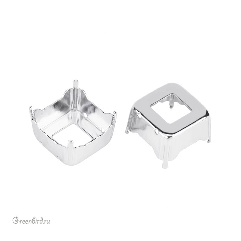 Оправа для кристаллов Swarovski – 4499 Prismatic Square Fancy Stone. Размер: 20 мм, металл: томпак (разновидность латуни), покрытие: родий. Цена указана за 1 шт.