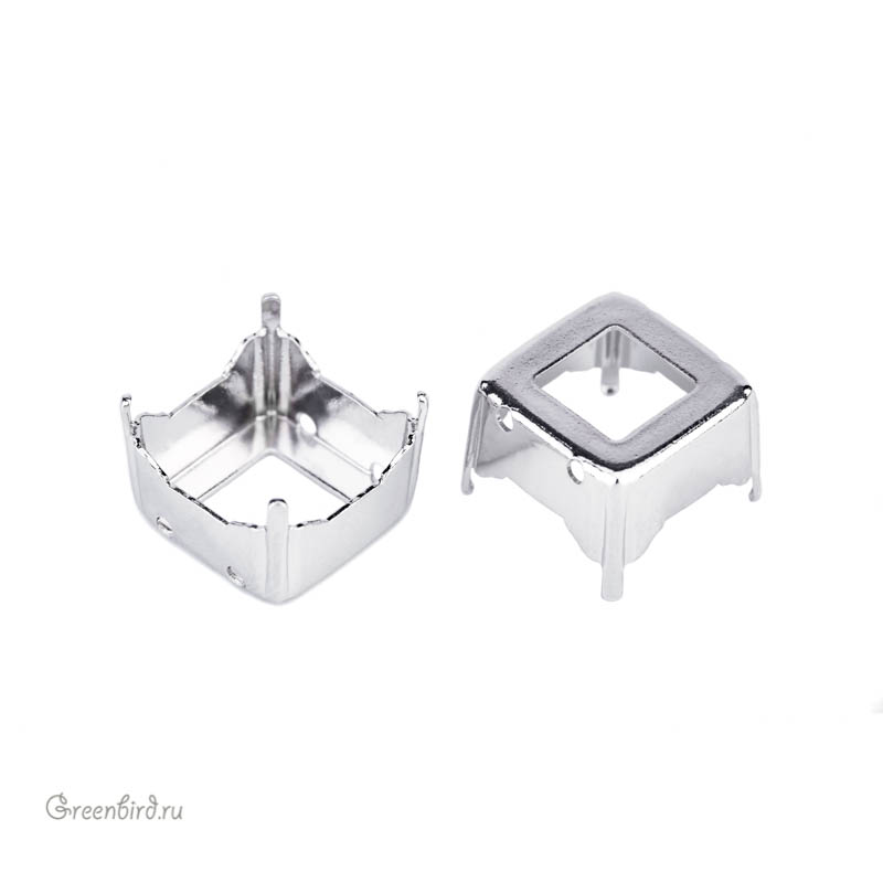 Оправа для кристаллов Swarovski – 4499 Prismatic Square Fancy Stone. Размер: 14 мм, металл: томпак (разновидность латуни), покрытие: родий. Цена указана за 1 шт.