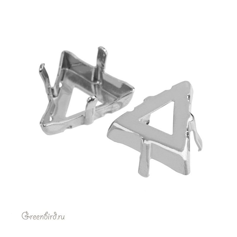 Оправа для кристаллов Swarovski – 4717 Delta Fancy Stone. Размер: 15,5 мм, металл: томпак (разновидность латуни), покрытие: родий. Цена указана за 1 шт.