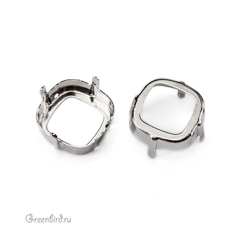 Оправа для кристаллов Swarovski – 4470 Cushion Square. Размер: 18 мм, металл: томпак (разновидность латуни), покрытие: родий. Цена указана за 1 шт.