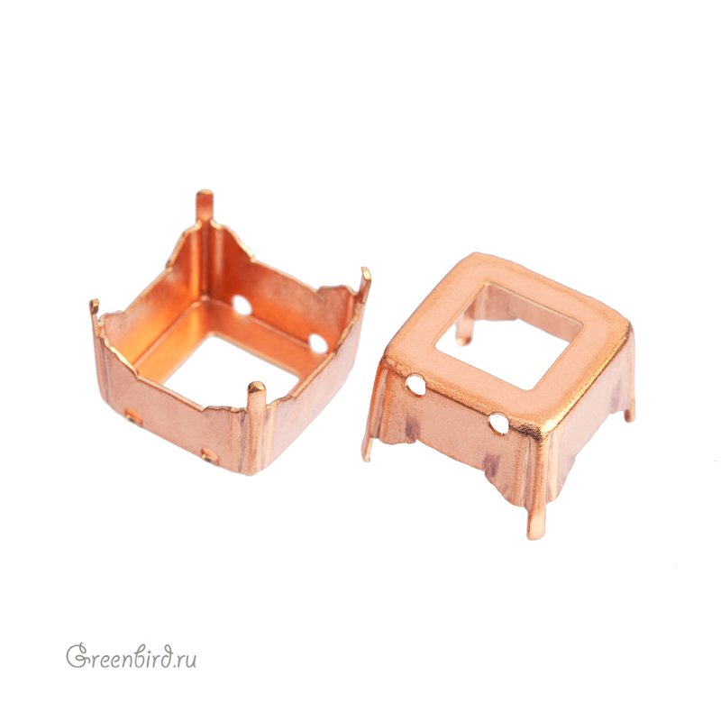 Оправа для кристаллов Swarovski – 4499 Prismatic Square Fancy Stone. Размер: 14 мм, металл: томпак (разновидность латуни) без покрытия. Технические, подходят для пайки. Допускается неоднородность цвета. В разных партиях цвет может варьироваться от светло-золотого к медному. Цена указана за 1 шт.
