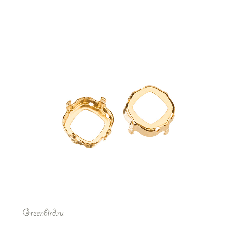 Оправа для кристаллов Swarovski – 4470 Cushion Square. Размер: 10 мм, металл: томпак (разновидность латуни), покрытие: золото. Цена указана за 1 шт.