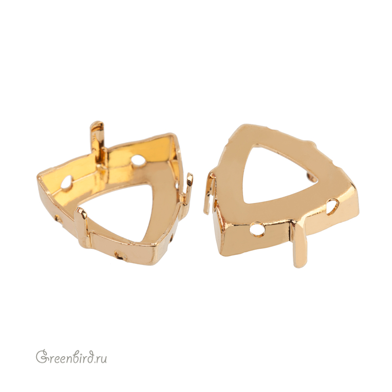 Оправа для кристаллов Swarovski – 4799 Prismatic Triangle Fancy Stone. Размер: 14 х 14,3 мм, металл: томпак (разновидность латуни), покрытие: золото. Цена указана за 1 шт.