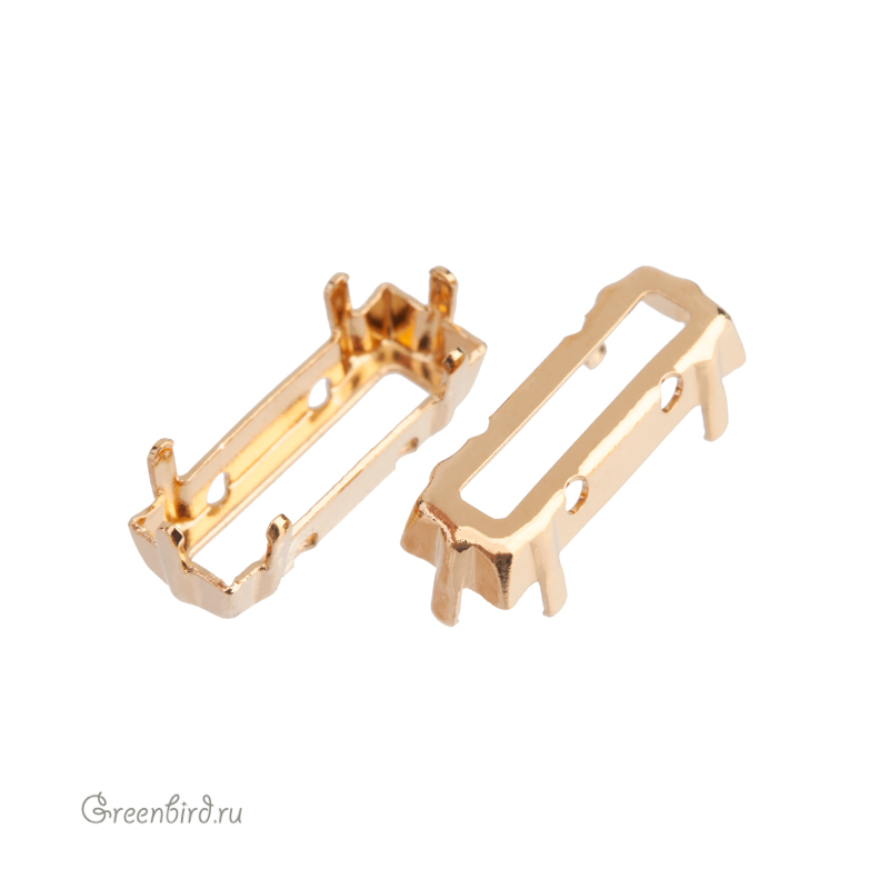 Оправа для кристаллов Swarovski – 4547 Princess Baquette. Размер: 15 х 5 мм, металл: томпак (разновидность латуни), покрытие: золото. Цена указана за 1 шт.