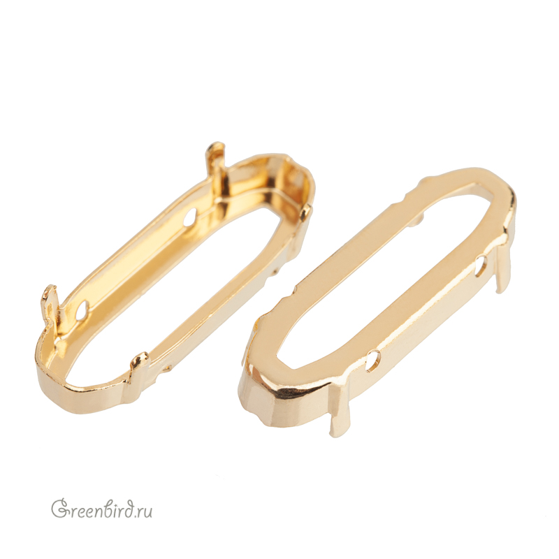 Оправа для кристаллов Swarovski – 4161 Long Classical Oval. Размер: 27 x 9 мм, металл: томпак (разновидность латуни), покрытие: золото. Цена указана за 1 шт.