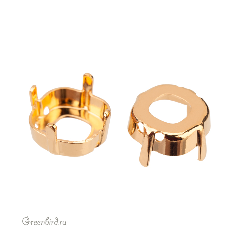 Оправа для кристаллов Swarovski – 4483 Thin Cushion Fancy Stone. Размер: 10 мм, металл: томпак (разновидность латуни), покрытие: золото. Цена указана за 1 шт.
