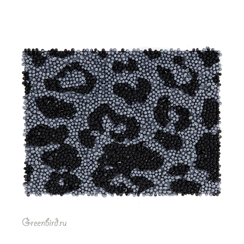 Swarovski 623482 Motif — кристальная ткань со стразами Swarovski (кристальное полотно). Размер: 40 x 30 мм. Цвет: черный с эффектом "Гематит" / Jet Hematite (#280HEM), принт на кристаллах: #WP23862 (анималистичный, печать белым цветом), подложка: черная. Материал: стекло, термополотно на силиконовой основе. Производство: Австрия. Цена указана за 1 шт.