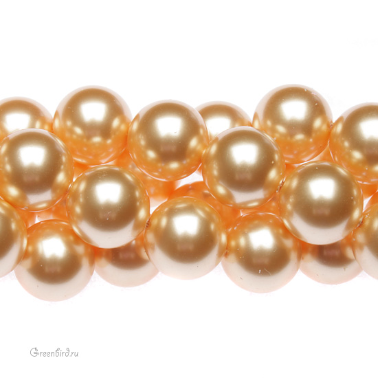 Swarovski 5810 Round — хрустальный круглый жемчуг. Размер: 12 мм, отверстие: 0,9 мм. Цвет: золото / Gold (#296). Материал: стекло с инновационным перламутровым покрытием, имитирующим натуральный жемчуг. Производство: Австрия. Цена указана за 1 шт.