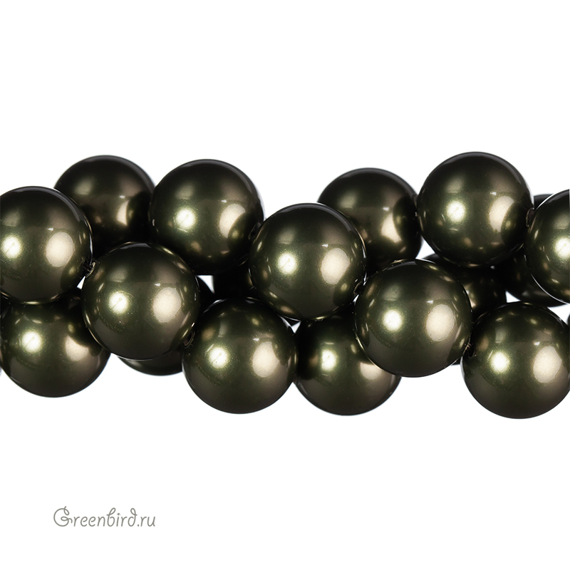 Swarovski 5811 Large Hole Round — хрустальный круглый жемчуг с большим отверстием. Размер: 12 мм, отверстие: 1,2 мм. Цвет: темно-зеленый / Dark Green (#814). Материал: стекло с инновационным перламутровым покрытием, имитирующим натуральный жемчуг. Производство: Австрия. Цена указана за 1 шт.