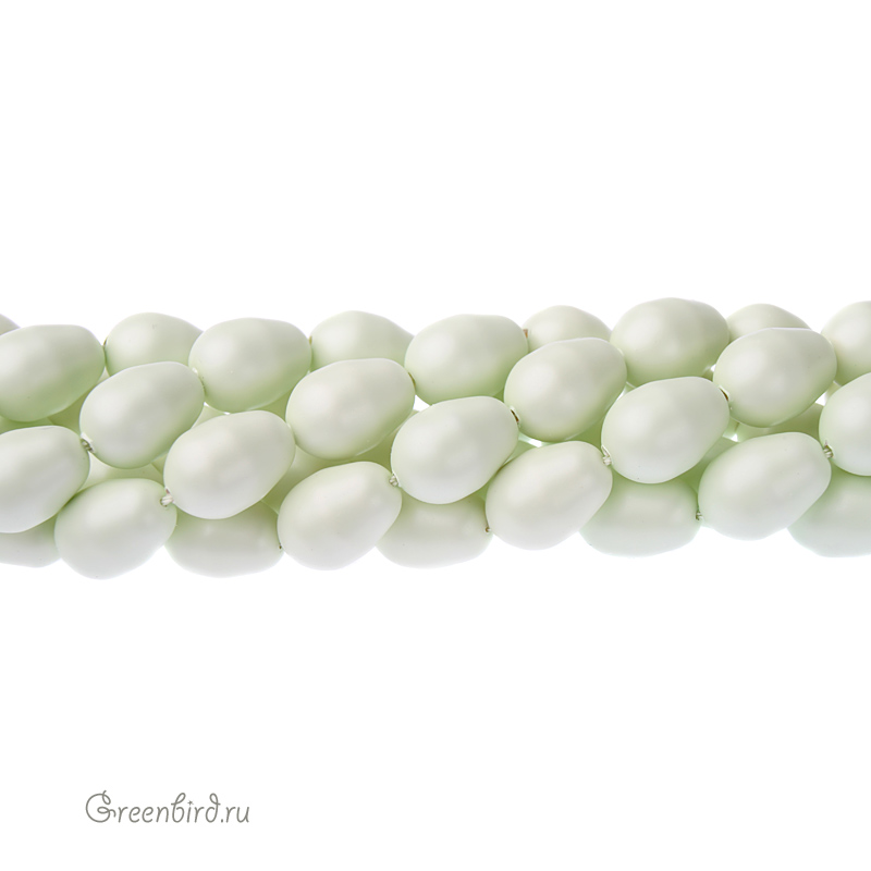 Swarovski 5821 Pear Shaped — хрустальный жемчуг в форме капли (груши). Размер: 11 х 8 мм, отверстие: 0,9 мм. Цвет: пастельно-зеленый / Pastel Green (#967). Материал: стекло с инновационным перламутровым покрытием, имитирующим натуральный жемчуг. Производство: Австрия. Цена указана за 1 шт.