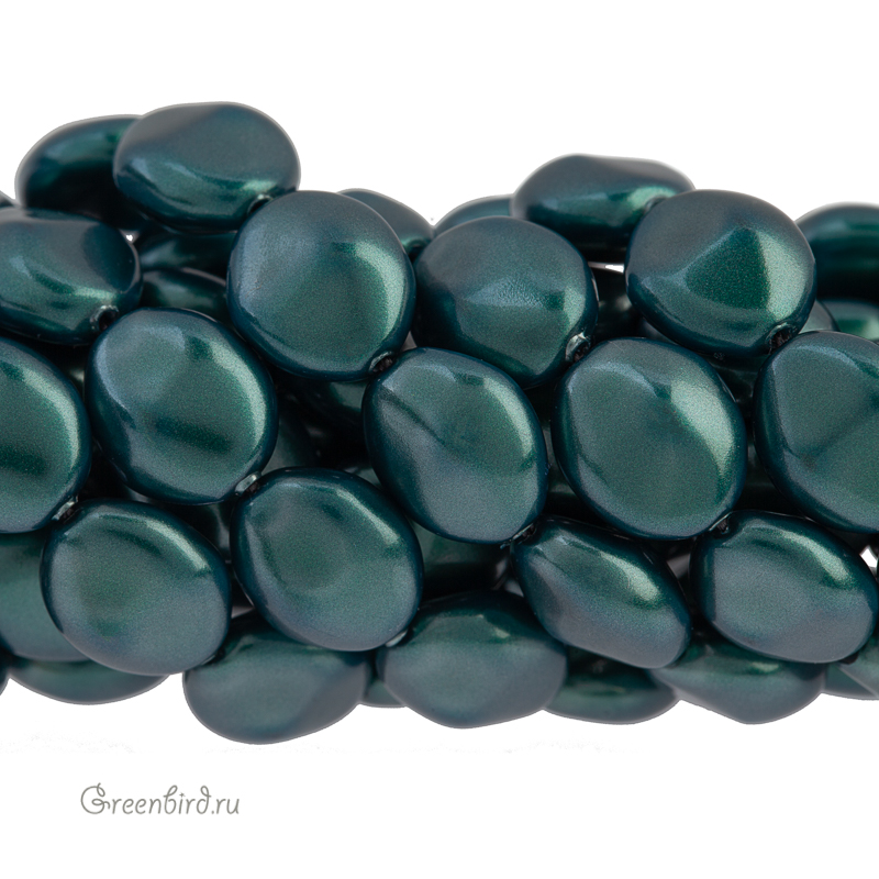 Swarovski 5842 Baroque Coin — хрустальный плоский барочный жемчуг. Размер: 10,4 х 9 х 5,1 мм, отверстие: 0,5-0,6 мм. Цвет: иризирующий зеленый таити / Iridescent Tahitian Look (#2004). Материал: стекло с инновационным перламутровым покрытием, имитирующим натуральный жемчуг. Производство: Австрия. Цена указана за 1 шт.