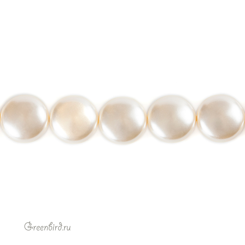 Swarovski 5860 Coin — плоский хрустальный жемчуг. Размер: 16 х 9,5 мм, отверстие: 1,3 мм. Цвет: кремовый / Cream (#620). Материал: стекло с инновационным перламутровым покрытием, имитирующим натуральный жемчуг. Производство: Австрия. Цена указана за 1 шт.