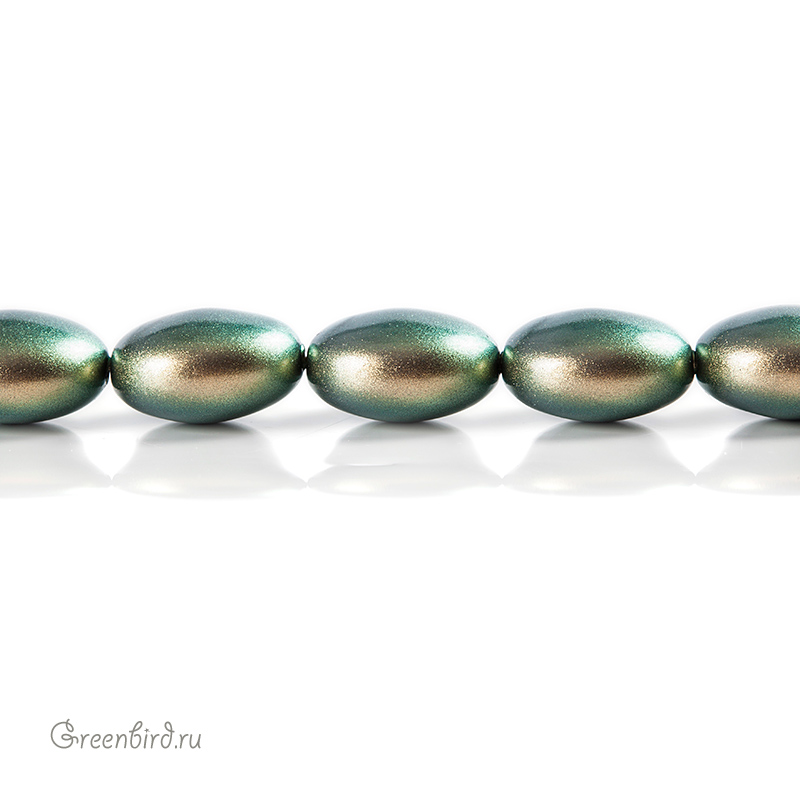 Swarovski 5860 Coin — плоский хрустальный жемчуг. Размер: 16 х 9,5 мм, отверстие: 1,3 мм. Цвет: иризирующий зеленый / Iridescent Green (#930). Материал: стекло с инновационным перламутровым покрытием, имитирующим натуральный жемчуг. Производство: Австрия. Цена указана за 1 шт.