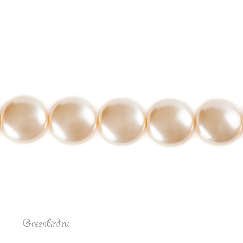 Swarovski 5860 Coin — плоский хрустальный жемчуг. Размер: 16 х 9,5 мм, отверстие: 1,3 мм. Цвет: светло-золотой / Light Gold (#539). Материал: стекло с инновационным перламутровым покрытием, имитирующим натуральный жемчуг. Производство: Австрия. Цена указана за 1 шт.