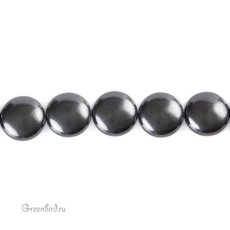 Swarovski 5860 Coin — плоский хрустальный жемчуг. Размер: 16 х 9,5 мм, отверстие: 1,3 мм. Цвет: черный / Black (#298). Материал: стекло с инновационным перламутровым покрытием, имитирующим натуральный жемчуг. Производство: Австрия. Цена указана за 1 шт.