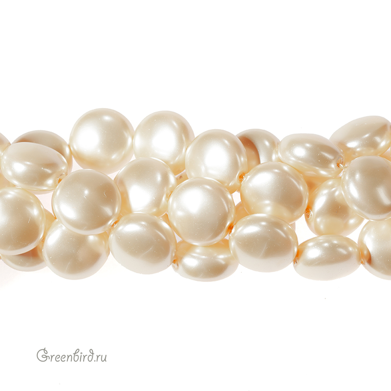 Swarovski 5860 Coin — плоский хрустальный жемчуг. Размер: 12 х 7 мм, отверстие: 1 мм. Цвет: светло-золотой / Light Gold (#539). Материал: стекло с инновационным перламутровым покрытием, имитирующим натуральный жемчуг. Производство: Австрия. Цена указана за 1 шт.