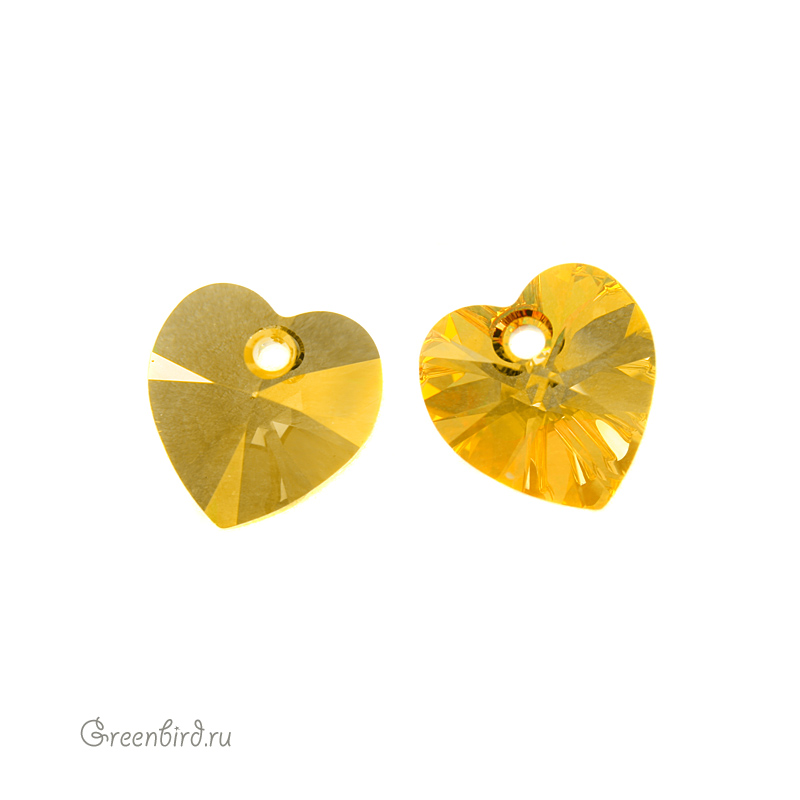 Компонент для бижутерии Swarovski – подвеска-сердечко (Swarovski Heart Fancy Stone Pendant). Размер: 10,3 х 10 мм, цвет: Metallic Sunshine (#001METSH). Производство: Австрия. Цена указана за 1 шт.\n