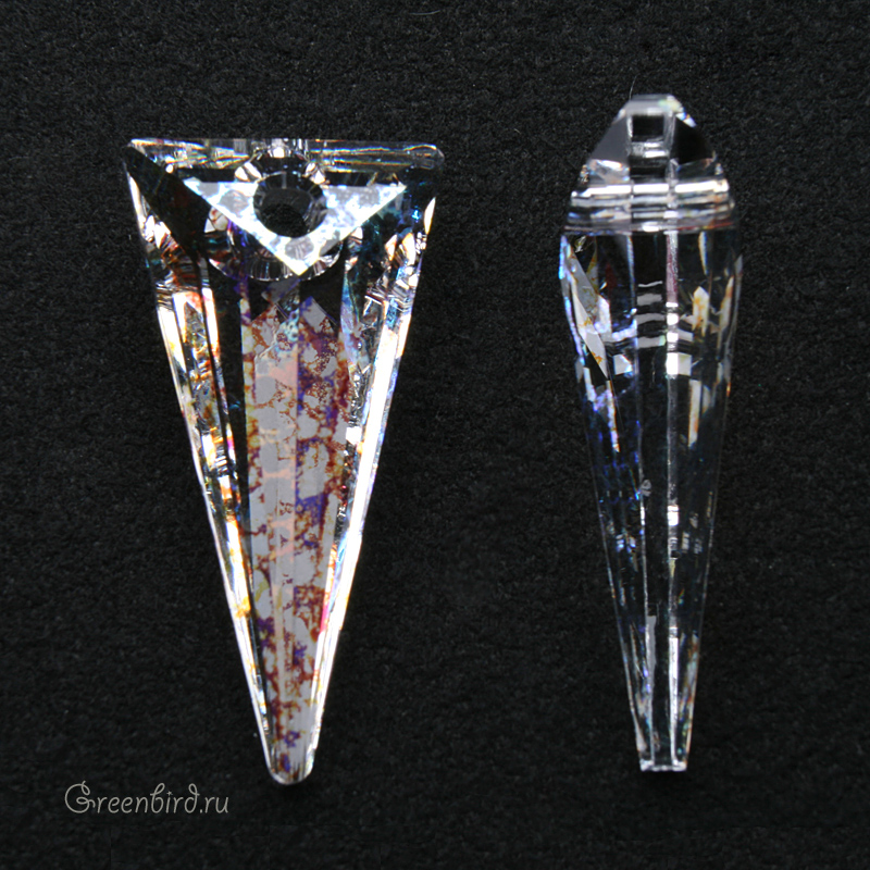 Компонент для бижутерии Swarovski – подвеска Шип (Swarovski Spike Pendant). Размер: 38,5 х 19,3 мм, отверстие: 3,8 мм, цвет: прозрачный с эффектом "Белая патина" / Crystal White Patina (#001WHIPA). Обратите внимание: эффект Crystal Patina имитирует на поверхности кристалла пятна и потемнения (эффект состаривания/патины). Дизайн: Жан-Поль Готье, Производство: Австрия. Цена указана за 1 шт.