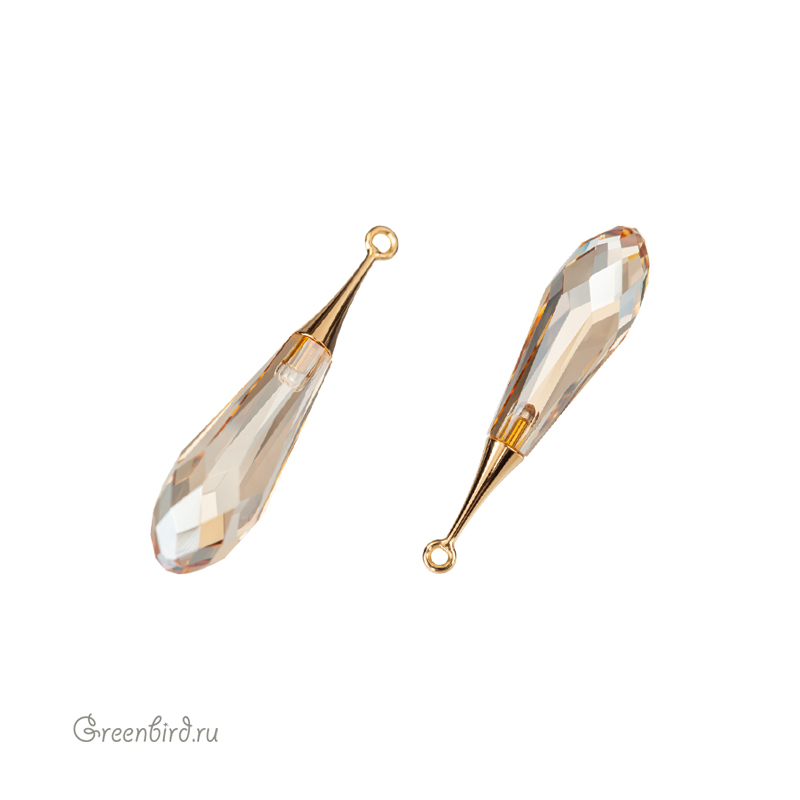 Компонент для бижутерии Swarovski – подвеска каплевидной формы (Swarovski Pure Drop Pendant). Размер: 31,5 мм (диаметр в широкой части: 7,2 мм, высота бейла: 11,6 мм, внутренний диаметр колечка: 1,3 мм), цвет: Golden Shadow (#001GSHA), материал бейла: латунь, покрытие: золото. Производство: Австрия. Цена указана за 1 шт.