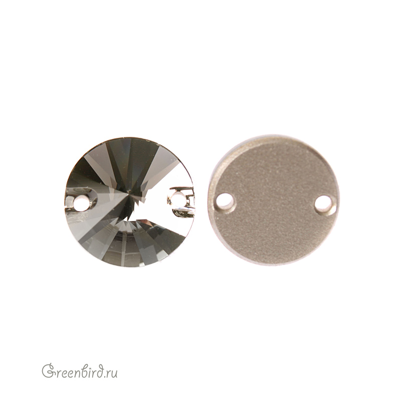 Swarovski 3200 Rivoli Sew-on Stone – пришивные стразы Риволи. Размер: 12 мм, два отверстия: 0,9 мм. Цвет: черный алмаз с фольгированием / Black Diamond Foiled (#215). Производство: Австрия. Цена указана за 1 шт.