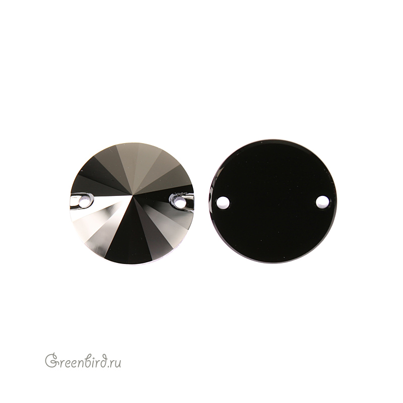 Swarovski 3200 Rivoli Sew-on Stone – пришивные стразы Риволи. Размер: 14 мм, два отверстия: 0,9 мм. Цвет: черный с эффектом "Гематит" без фольги / Jet Hematite Unfoiled (#280HEM). Производство: Австрия. Цена указана за 1 шт.