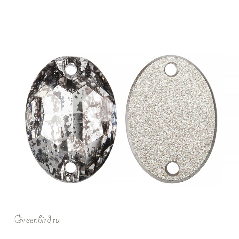 Swarovski 3210 Oval Sew-on Stone – пришивные стразы овальной формы с двумя отверстиями. Размер: 16 х 11 мм, отверстие: 1,6 мм. Цвет: прозрачный с эффектом "Серебряная патина" с фольгированием / Crystal Silver Patina Foiled (#001SILPA). Производство: Австрия. Цена указана за 1 шт.