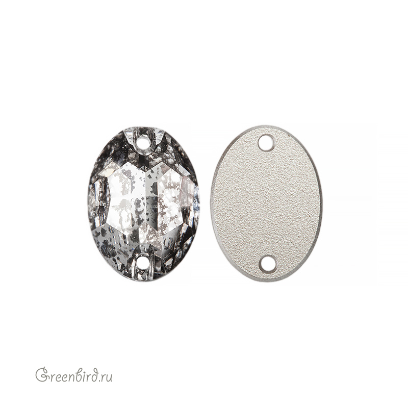 Swarovski 3210 Oval Sew-on Stone – пришивные стразы овальной формы с двумя отверстиями. Размер: 10 х 7 мм, отверстие: 1,5 мм. Цвет: прозрачный с эффектом "Серебряная патина" с фольгированием / Crystal Silver Patina Foiled (#001SILPA). Производство: Австрия. Цена указана за 1 шт.