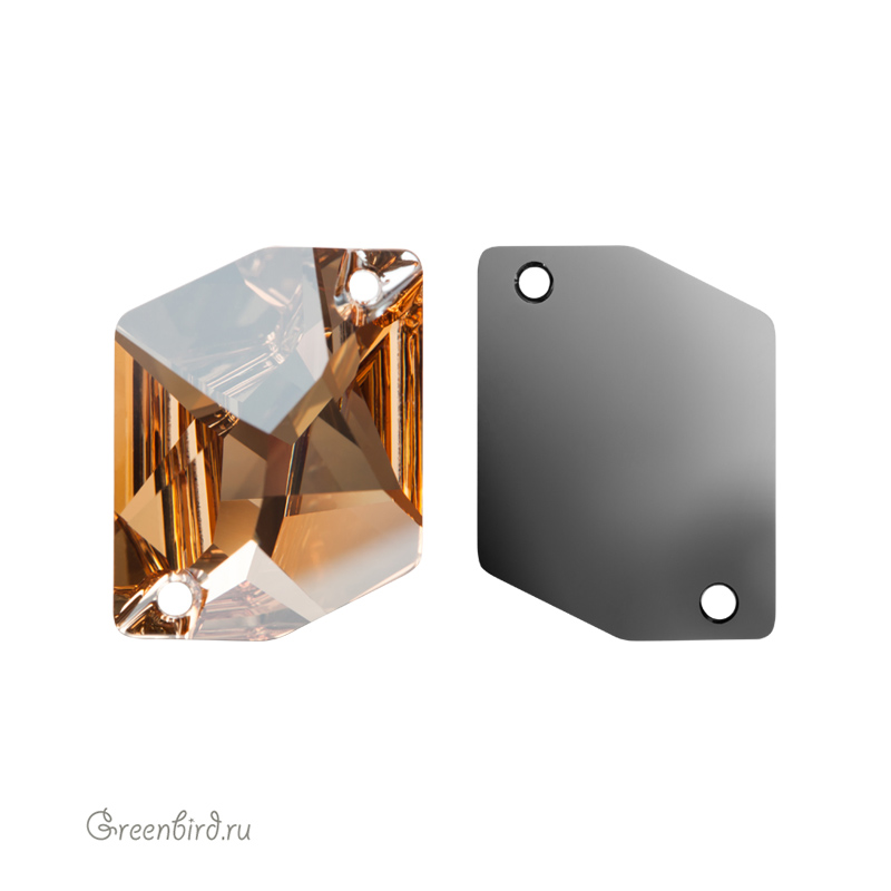 Swarovski 3265 Cosmic Sew-on Stone – пришивные стразы Космик ассиметричной формы с двумя отверстиями. Размер: 26 х 21 мм, отверстие: 1,7 мм. Цвет: прозрачный с эффектом "Золотистая дымка" с фольгированием / Crystal Golden Shadow Foiled (#001GSHA). Производство: Австрия. Цена указана за 1 шт.