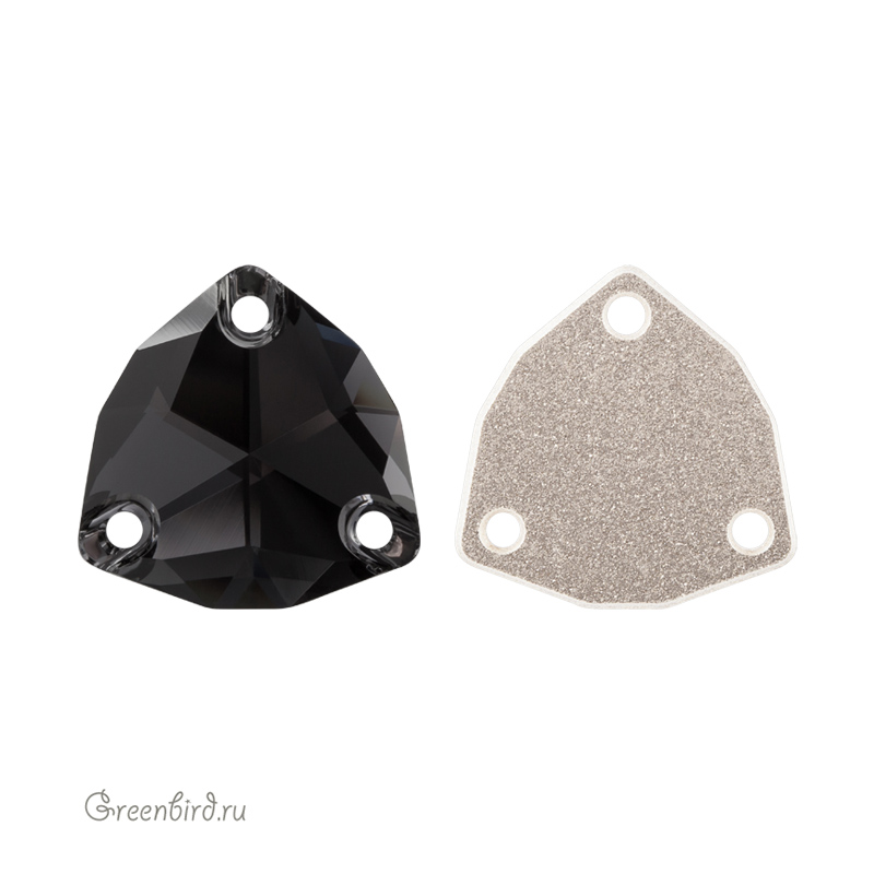 Swarovski 3272 Trilliant Sew-on Stone – пришивные стразы в форме треугольника с выпуклыми сторонами с тремя отверстиями. Размер: 16 мм. Цвет: графит с фольгированием / Graphite Foiled (#253). Производство: Австрия. Цена указана за 1 шт.