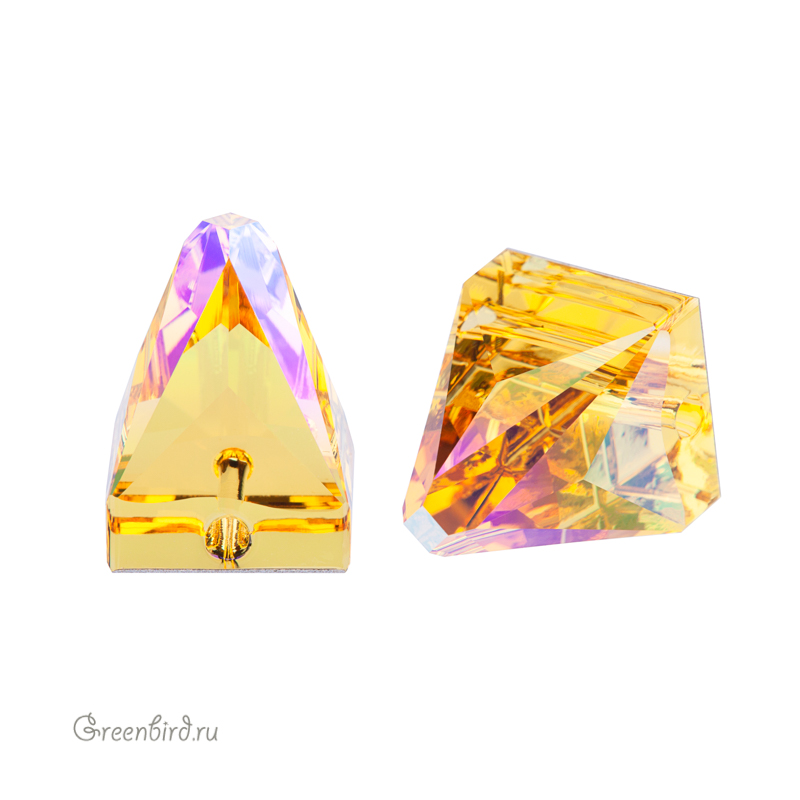 Swarovski 3296 Square Spike Sew-on Stone – пришивные стразы в форме шипа с квадратным основанием с одним отверстием. Размер: 10 х 10 мм, высота: 13,3 мм, отверстие: 1,4 мм. Цвет: светлый топаз с мерцающим эффектом с фольгированием / Light Topaz Shimmer Foiled (#226SHIM). Производство: Австрия. Цена указана за 1 шт.