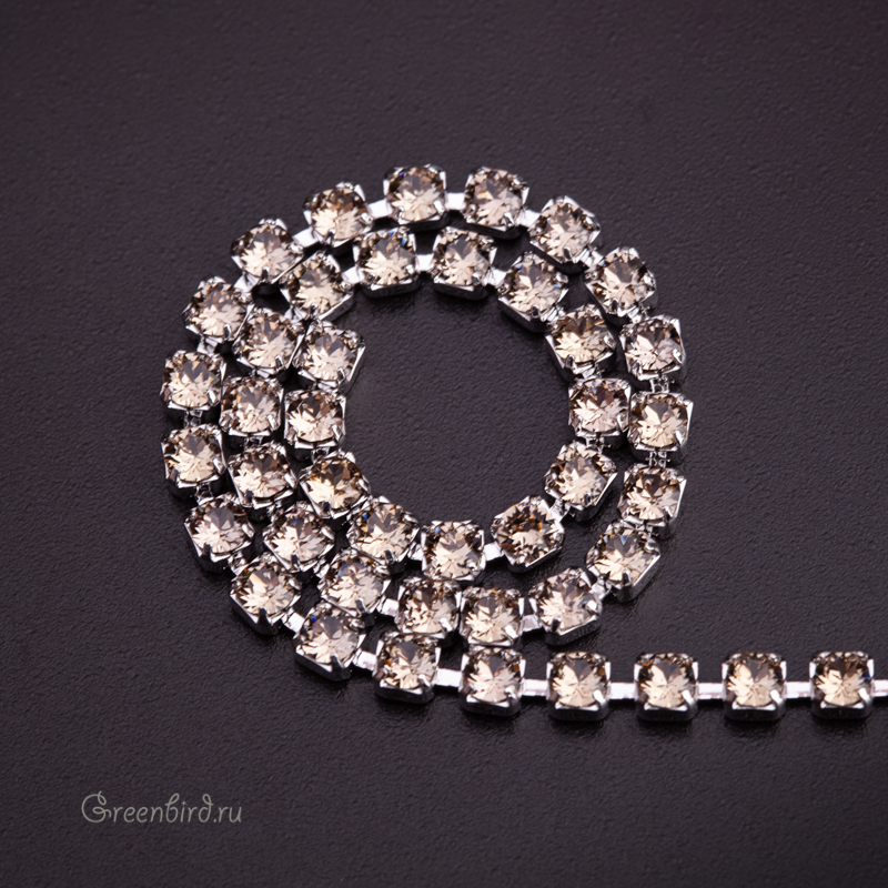 Цепочка со стразами Swarovski. Материал: латунь, покрытие: родий. Кристалл – арт. 1088, цвет: греж (серо-бежевый) / Greige (#284), размер: PP18 (2,40 – 2,50 мм). Производство: Австрия. Цена указана за 1 шт. При заказе 2 или 3 единиц этого товара вы получите непрерывный отрезок длиной 20 или 30 см соответственно.