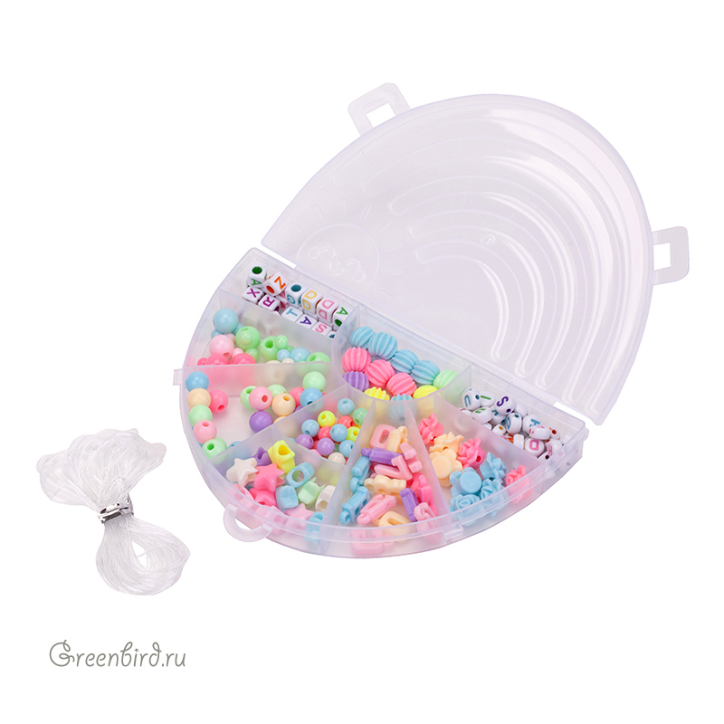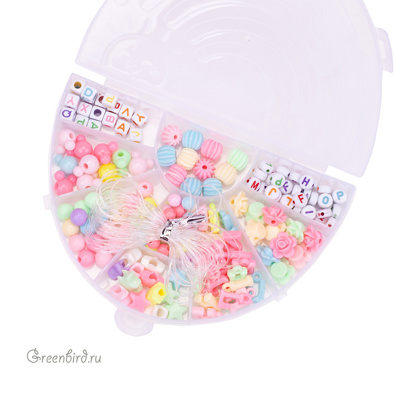 - 9 видов разнообразных бусин (буквы, фигурные бусины);