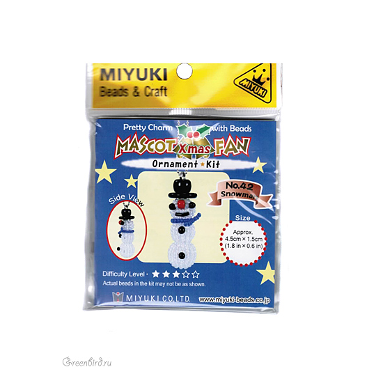 Новогодний набор MIYUKI для рукоделия в праздничной упаковке. В набор входят все материалы для создания изделия, изображенного на фото (бисер MIYUKI, пластиковые бусины, цепочка, леска, соединительное колечко) и подробная инструкция на английском языке. Размер готового изделия: 4,5 х 1,5 см. Цена указана за один набор.