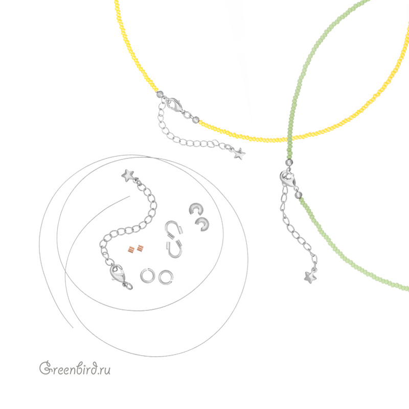 По бесплатному мастер-классу «Как собрать чокер на тросик: базовое колье из бисера» от GreenBird можно создать простое, но изящное украшение. Для вашего удобства мы собрали все необходимые расходные материалы в одном наборе.