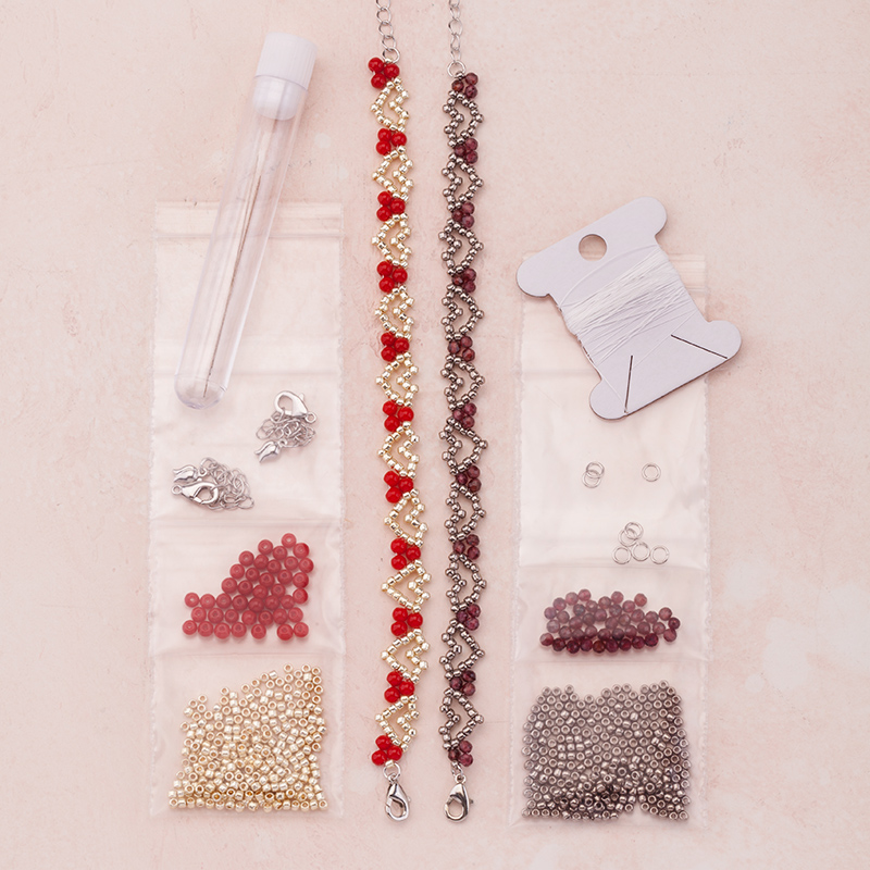 В набор входят все необходимые материалы на два браслета разных цветов: