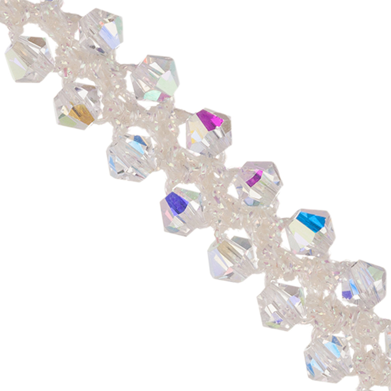 В процессе создания вы освоите технику вязания с кристаллами, которая позволяет добиться аккуратного и плотного плетения с равномерным распределением сияющих элементов. Биконусы мягко переливаются в движении, создавая эффект деликатного мерцания.