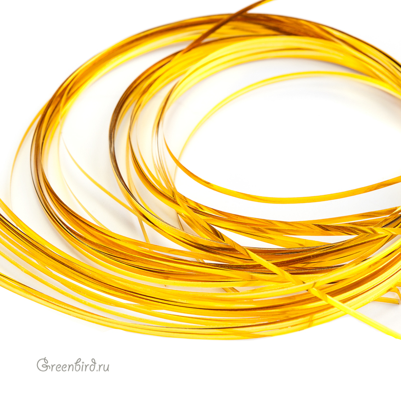 Бить — металлическая лента для вышивки. Ширина: 1 мм, цвет: яркое золото. Производство: Индия. Цена указана за 20 полосок по 61 см (примерно 4,1 грамма).