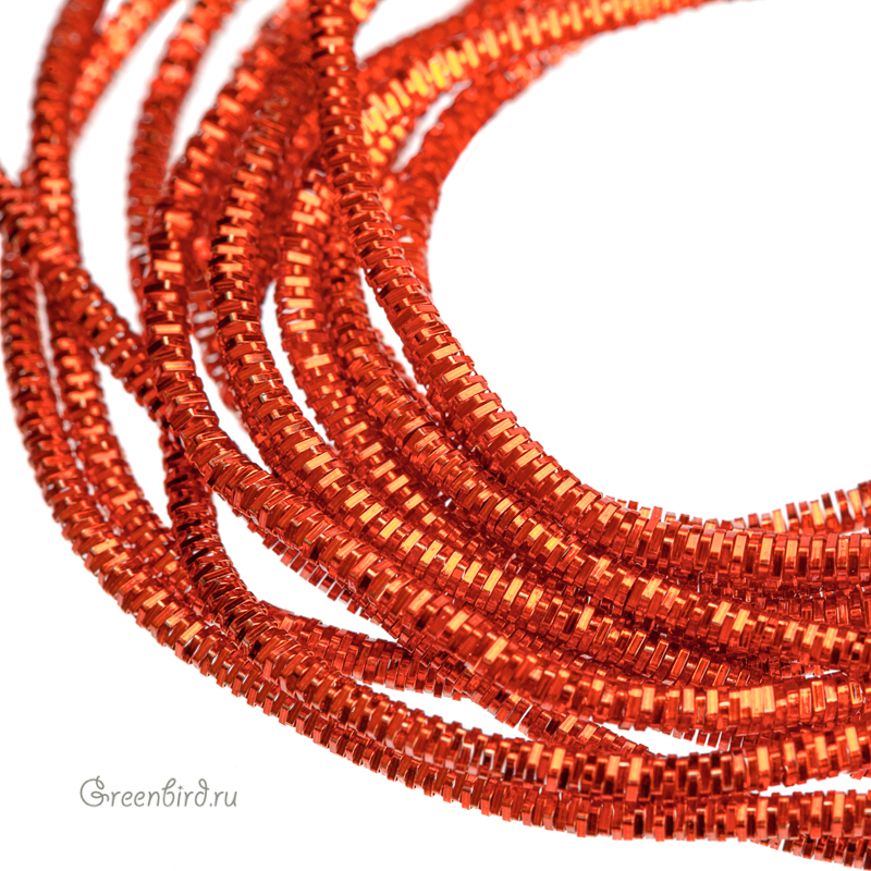 Канитель трунцал — металлическая граненая нить для вышивания из проволоки плоского сечения (медь), закрученная в спираль пятиугольной формы. Диаметр: 1,4 мм, цвет: темно-оранжевый. Производство: Индия. Цена указана за 5 грамм (примерно 2,5 метра). Из-за особенностей материала непрерывность нити в упаковке не гарантируется, вы получите несколько отрезков разной длины.