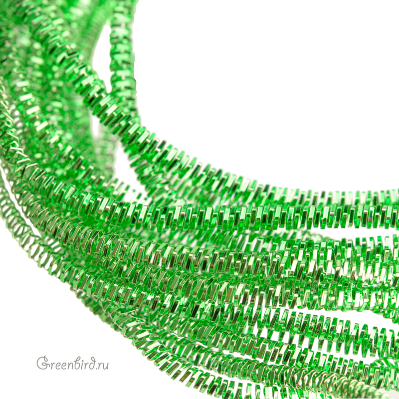 Канитель трунцал — металлическая граненая нить для вышивания из проволоки плоского сечения (медь), закрученная в спираль пятиугольной формы. Диаметр: 1,5 мм, цвет: травянисто-зеленый. Производство: Индия. Цена указана за 5 грамм (примерно 2,7 метра). Из-за особенностей материала непрерывность нити в упаковке не гарантируется, вы получите несколько отрезков разной длины.