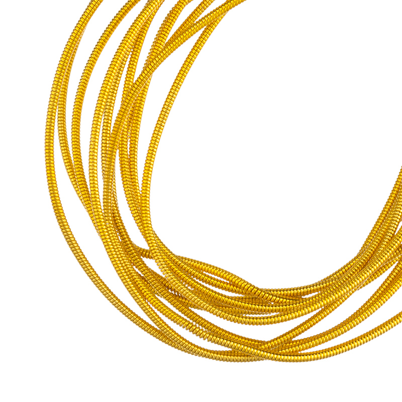 Канитель жесткая — металлическая нить для вышивания (медь), закрученная в спираль. Диаметр: 1 мм, цвет: темное золото. Производство: Индия. Цена указана за 5 грамм (примерно 1,15 метра). Из-за особенностей материала непрерывность нити в упаковке не гарантируется, вы получите несколько отрезков разной длины.