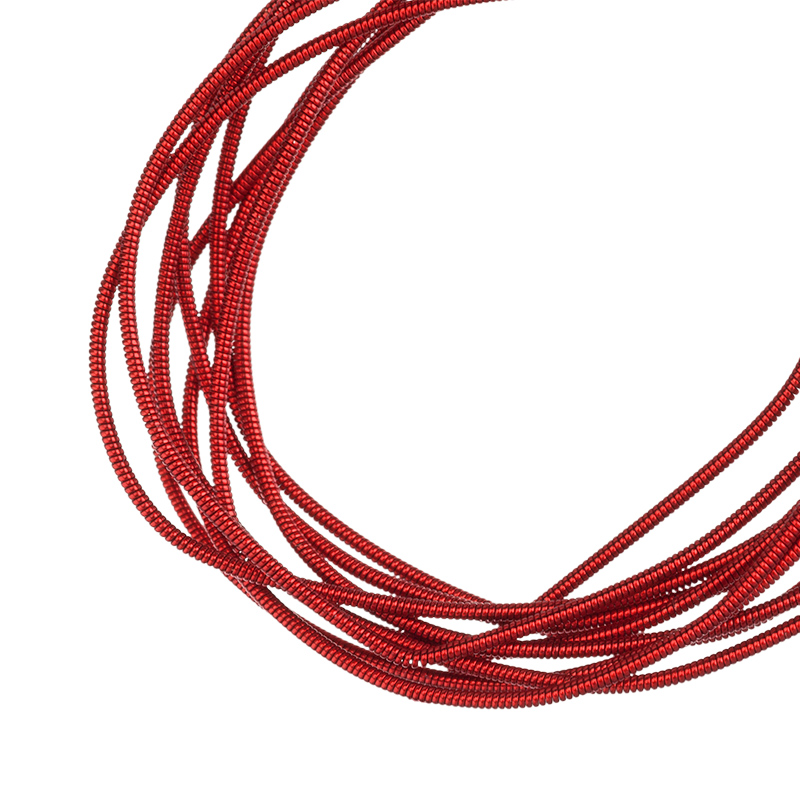 Канитель жесткая — металлическая нить для вышивания (медь), закрученная в спираль. Диаметр: 1 мм, цвет: красный. Производство: Индия. Цена указана за 5 грамм (примерно 1,15 метра). Из-за особенностей материала непрерывность нити в упаковке не гарантируется, вы получите несколько отрезков разной длины.