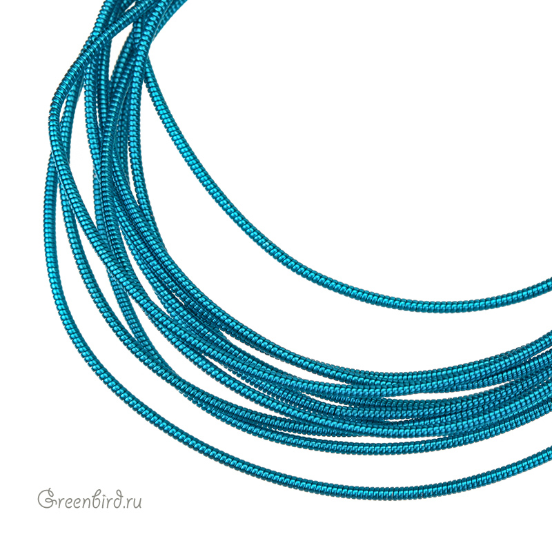 Канитель жесткая — металлическая нить для вышивания (медь), закрученная в спираль. Диаметр: 1 мм, цвет: ярко-голубой. Производство: Индия. Цена указана за 5 грамм (примерно 1,15 метра). Из-за особенностей материала непрерывность нити в упаковке не гарантируется, вы получите несколько отрезков разной длины.