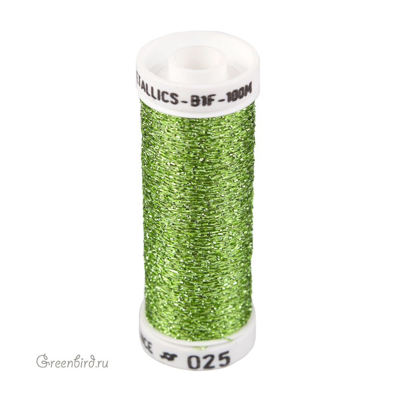 Мягкая металлизированная нить букле Au Ver à Soie B1F (Bouclé / Blending Filament) для вышивки и ручной работы. Цвет: #025 (ярко-зеленый). Состав: 35% полиэстер, 65% купро (тонкая шелковая вискоза). Производство: Франция. Цена указана за 1 шт. (100 метров).