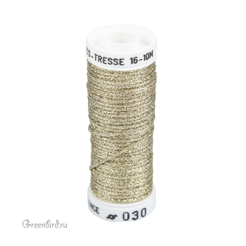 Металлизированная нить Au Ver à Soie Métallisé Tressé #16 для вышивки и ручной работы. Цвет: #030 (светлое золото). Состав: 35% полиэстер, 65% купро (тонкая шелковая вискоза). Производство: Франция. Цена указана за 1 шт. (10 метров).