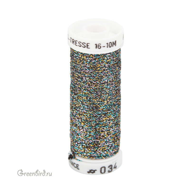 Металлизированная нить Au Ver à Soie Métallisé Tressé #16 для вышивки и ручной работы. Цвет: #034 (меланж, золото/бирюзовый/бледно-розовый/черный). Состав: 35% полиэстер, 65% купро (тонкая шелковая вискоза). Производство: Франция. Цена указана за 1 шт. (10 метров).