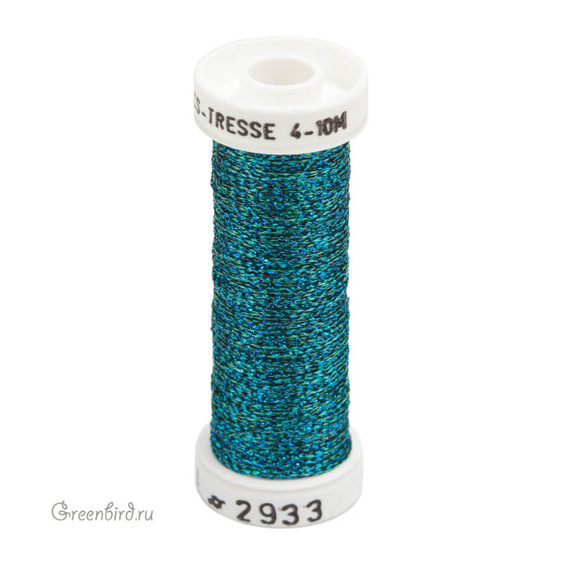 Металлизированная нить Au Ver à Soie Métallisé Tressé #4 для вышивки и ручной работы. Цвет: #2933 (меланж, насыщенно-бирюзовый/зеленый/черный). Состав: 35% полиэстер, 65% купро (тонкая шелковая вискоза). Производство: Франция. Цена указана за 1 шт. (10 метров).