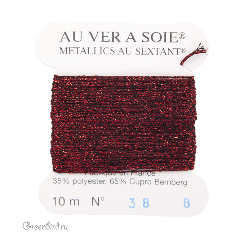 Металлизированная нить Au Ver à Soie Métallisé Tressé #8 для вышивки и ручной работы. Цвет: #038 (красный/черный). Состав: 35% полиэстер, 65% купро (тонкая шелковая вискоза). Производство: Франция. Цена указана за 1 шт. (10 метров).